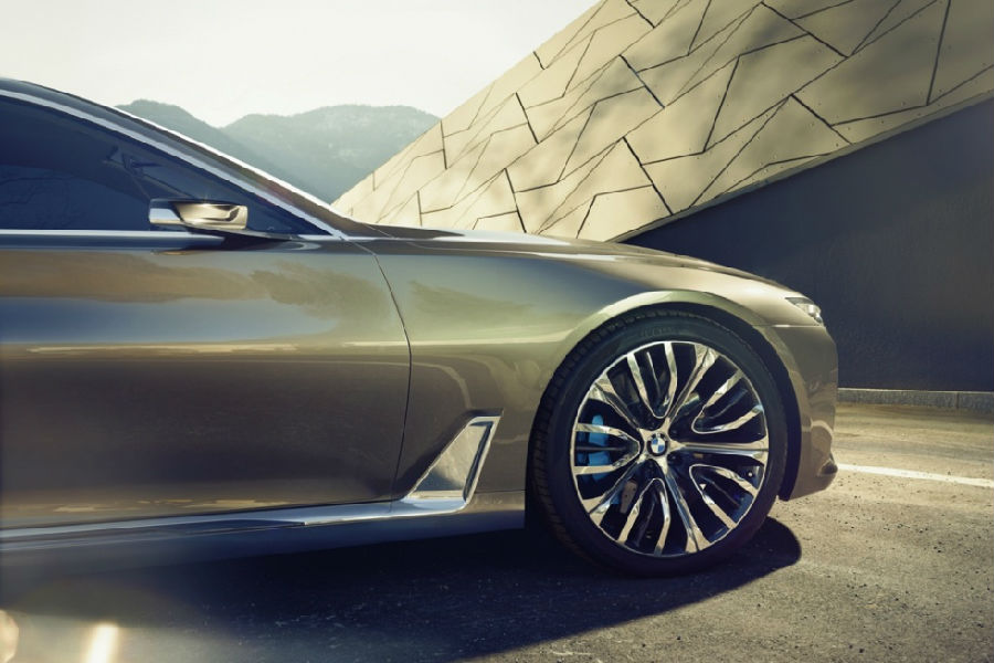 全新宝马Vision Future豪华概念车型的设计理念反映出宝马公司对未来大型豪华轿车设计的思考,该全新概念车采用了大胆的液体金属色涂装,拥有巨大的双肾型中网设计。与巨大双肾型中网形成巨大的反差的是其细长激光头灯,这种反差式设计也使得前脸使得攻击性十足。全新宝马Vision Future豪华概念车型采用了碳纤维扰流板,OLED尾灯,车架部分由铝合金材质制造。