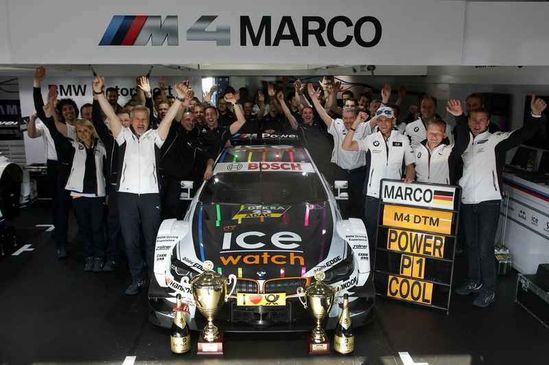 首场比赛,首个胜利:全新BMW M4 DTM赛车在霍根海姆赛道取得完美开局。在4.574公里的赛道上疾驰42圈后,最终Marco Wittmann(德国)驾驶Ice-Watch集团涂装的BMW M4 DTM赛车第一个冲过终点线,取得了DTM 30周年这个纪念赛季的第一场重要胜利。在霍根海姆站,24岁的Marco Wittmann在其第11场DTM比赛中首次登上冠军领奖台,并为BMW RMG车队夺得首个冠军。BMW在DTM中的累计获胜场次则刷新至60场。