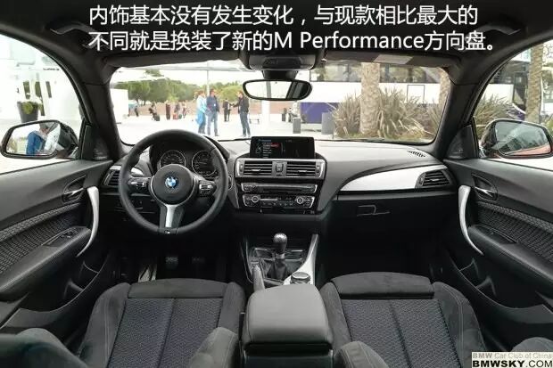 内饰布局也是老样子,只是方向盘换成了最新的M Performance系列,手感绝佳,中控台上除了几个按钮经过了修饰,其他和老款无异。另外,iDrive系统则加入了互联驾驶功能。另外,像带排队功能的自适应巡航系统、新一代自动泊车系统也是1系上的新增选装配置。
