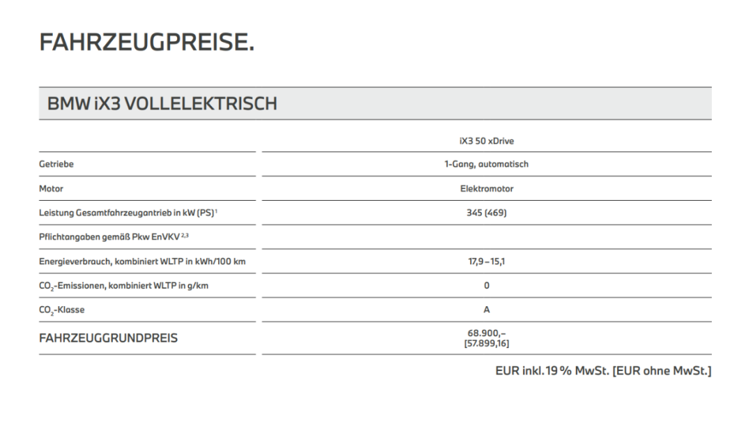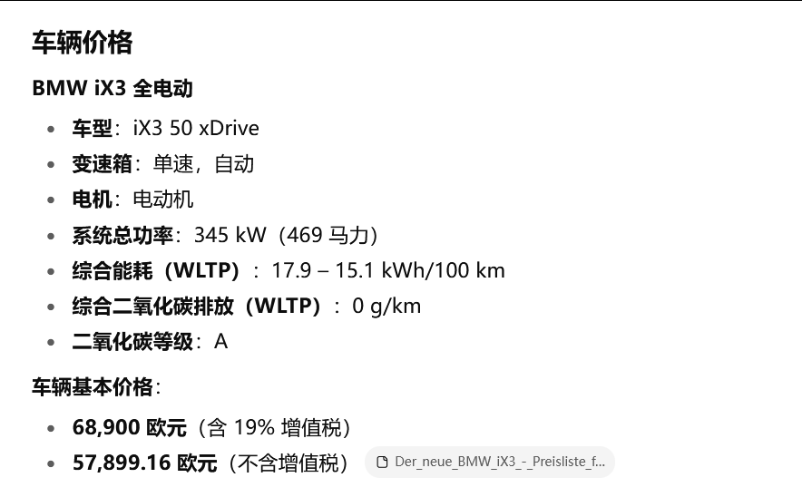 慕尼**展之后的9月9日,宝马集团发出一份价格表,是关于新世代iX3在德国的定价: