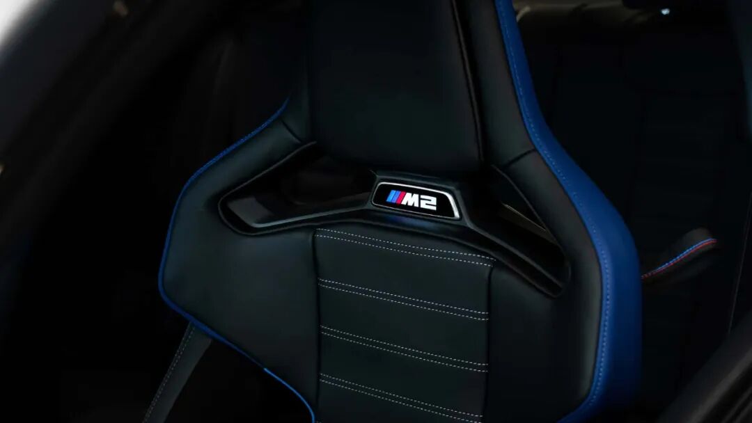 黑色 Vernasca 真皮座椅 配上 M 三色缝线,细节极致克制。