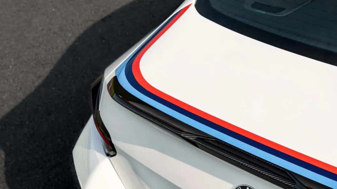 整车采用 阿尔卑斯白(Alpine White) 车色,辅以手绘 BMW Motorsport 三色条纹,从引擎盖一路延伸至尾部。
