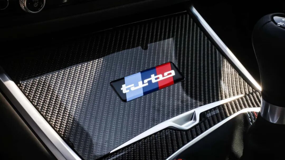 碳纤维车顶上也有不对称彩带贯穿,全车布满 “turbo” 字样,连 Power Dome 上的黑色字体都在宣告它的来历。
