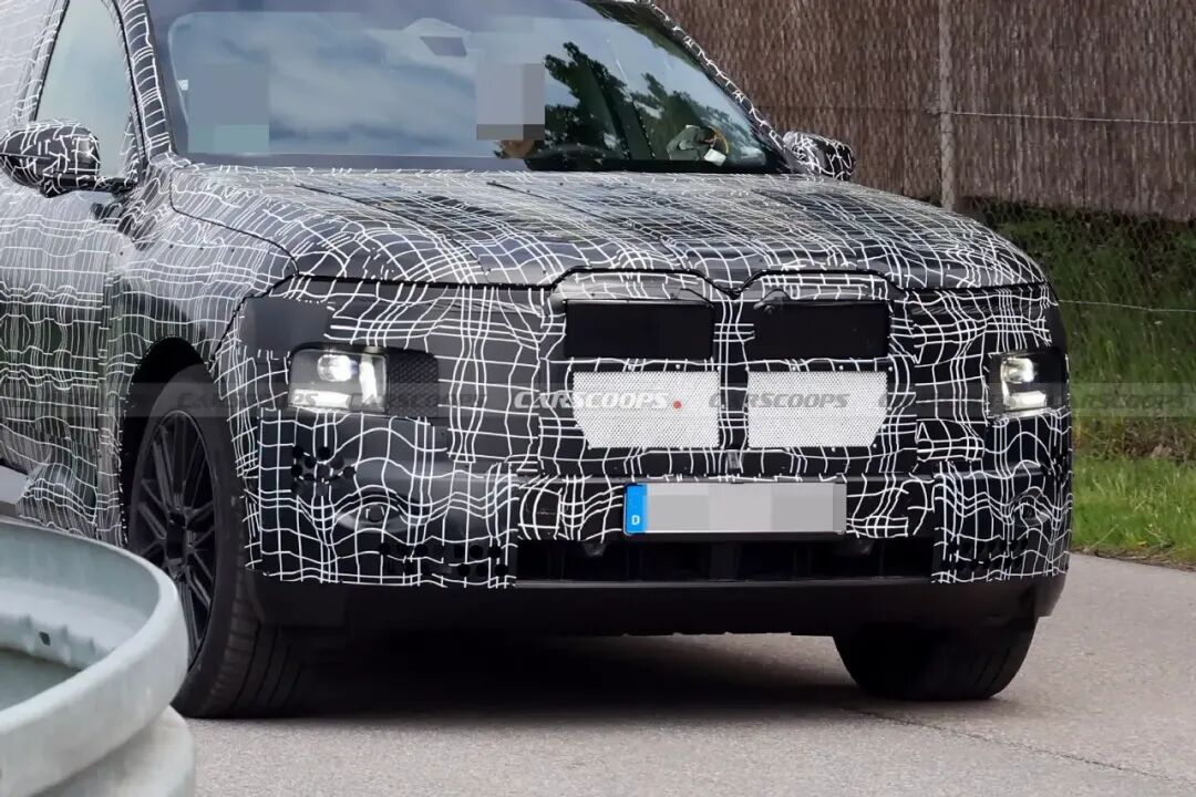 细节的话,首先前脸的整体造型是更加方正的,双肾格栅的尺寸很大且更加立体;而前大灯应该还是分体式设计,上层的日行灯更加细长,而主体远近光灯则位于下方;