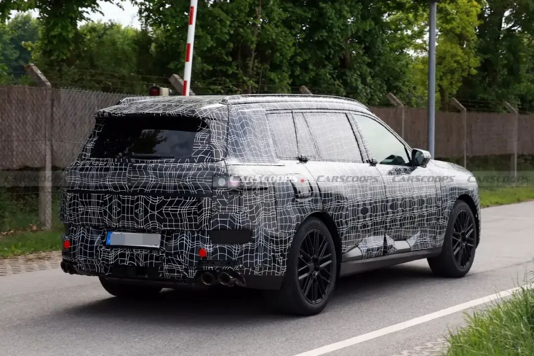 而在尾部,目前能看出来的两个变化:其一是牌照架不再是尾门上,而是移到了下方;其二是双边四出的排气布局,显然这是属于M Performance系列的车型,搭载V8发动机,尾标会去掉“i”,可能会命名为M60吧?如果动力有啥大变化可能会是M70。