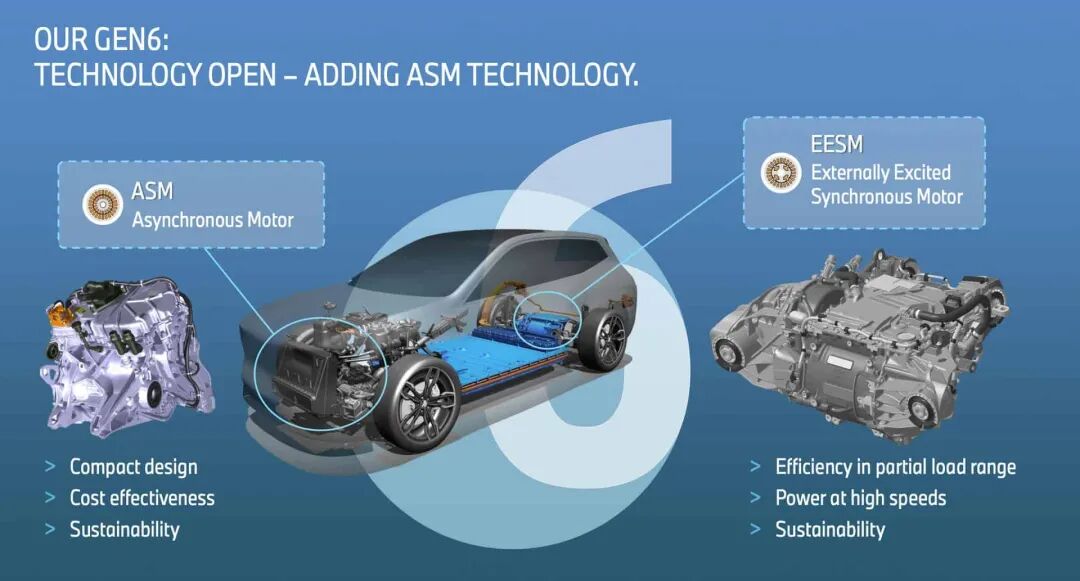 宝马的路线完全不同。他们不追求最轻最猛,而是坚持“最可控、最耐久、最宝马”。从第五代eDrive开始,宝马全面采用励磁同步电机(ESM),也就是无稀土电机。它不靠永磁体,而是通过在转子上通电来激发磁场。磁场可调、反应线性、控制更细腻。这意味着工程师能随时“调磁”,想要爆发就加电流,想要高效就弱磁。在驾驶逻辑上,它更像一台能随心所欲调性格的电机。这就是宝马所谓的“电驱灵魂”——不是单纯追数字,而是让动力可被感知、可被掌控。在中国严控稀土出口的关口,宝马的生产进度和成本更加可控。
